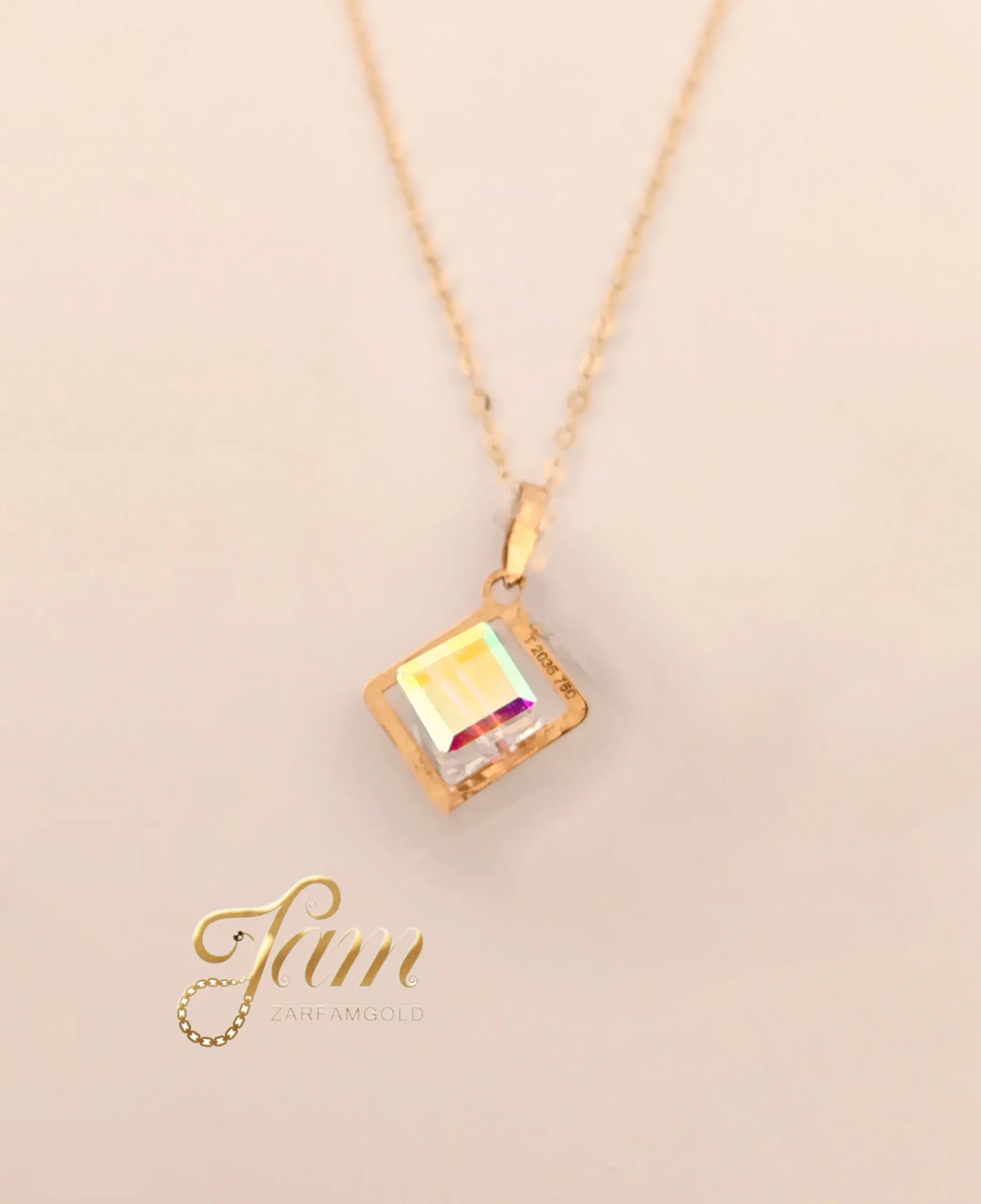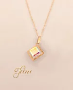 پلاک طلا مکعب سوارسکی سفید کد P649