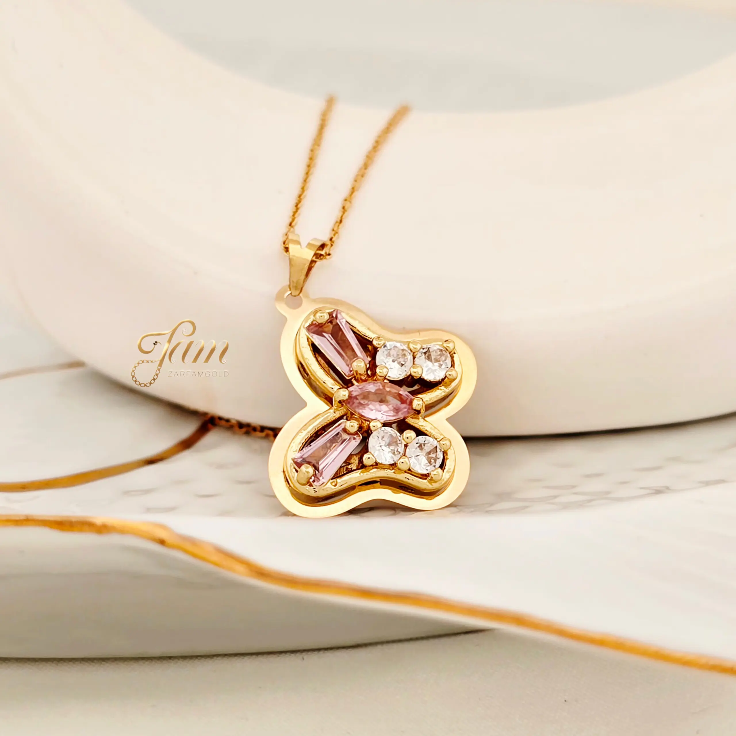 پلاک طلا پروانه نگین الماسی سواروسکی کد P6617