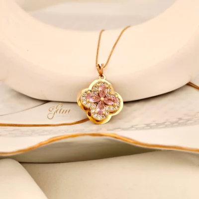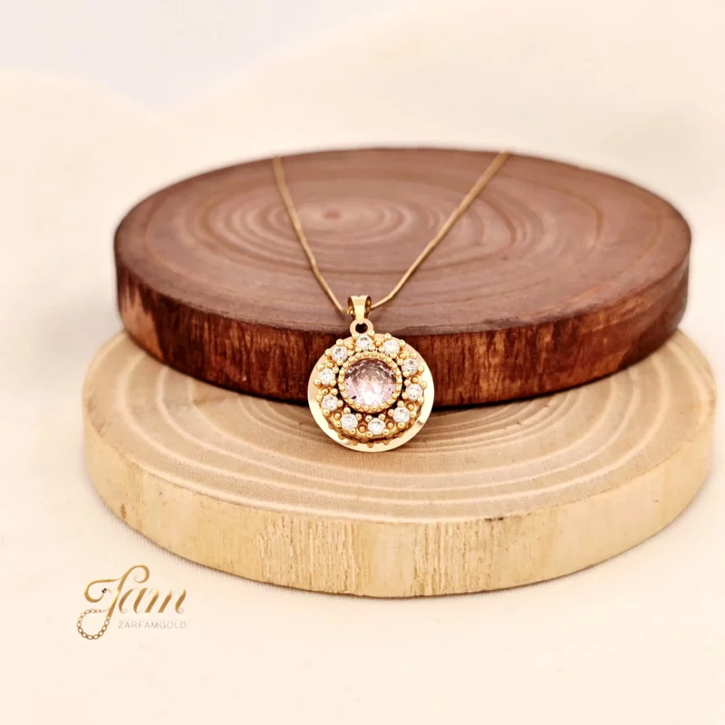 پلاک طلا ونکلیف سفید و صورتی سواروسکی کد P6760