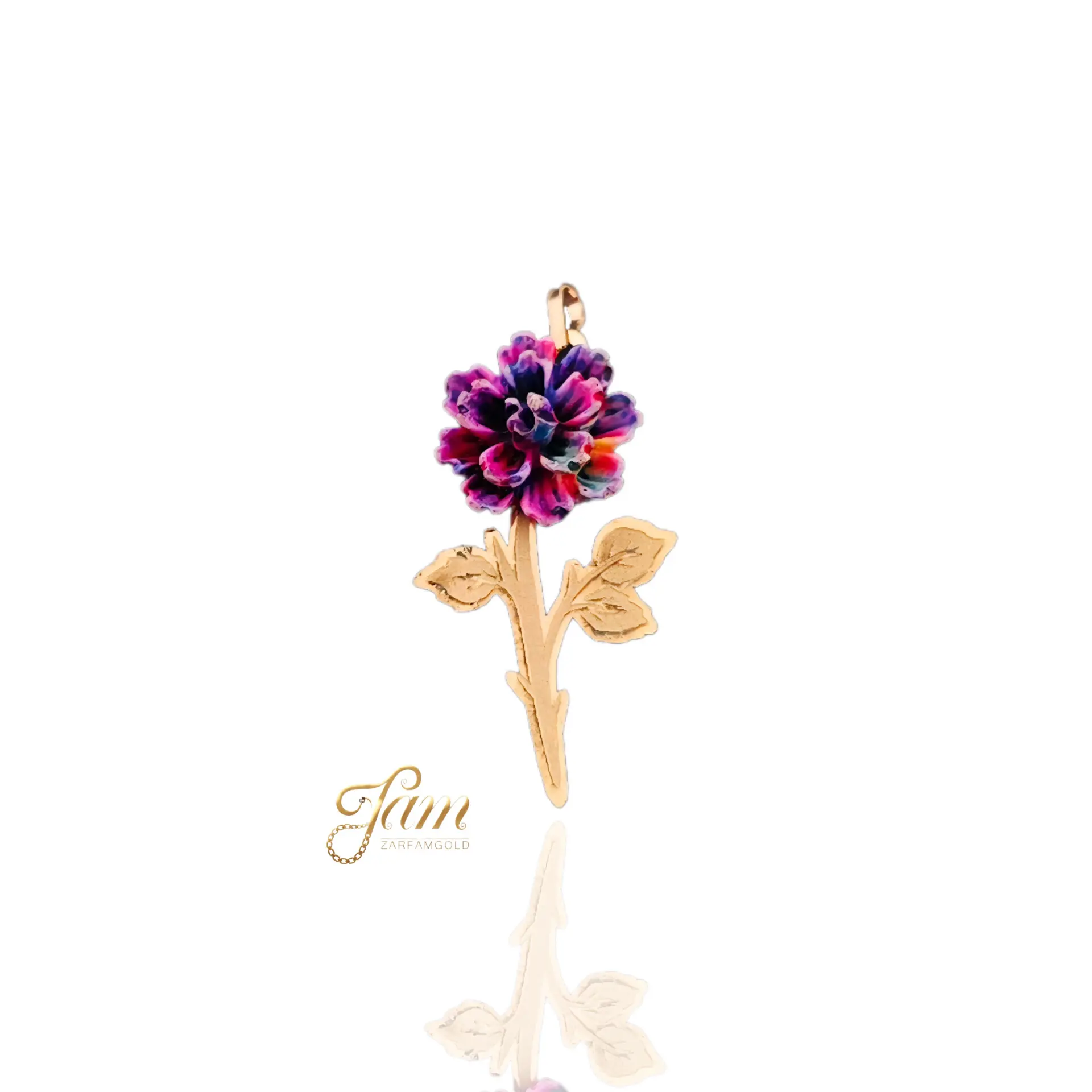 پلاک طلا گل بنفش چند رنگ ملیح کد P6252