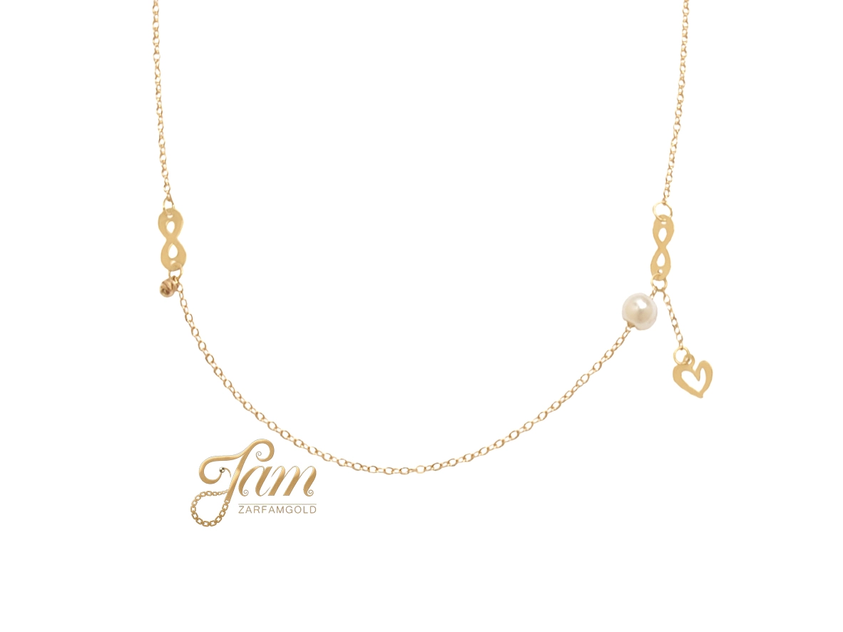 گردنبند طلا بی نهایت و مروارید با آویز قلب کد NP6957