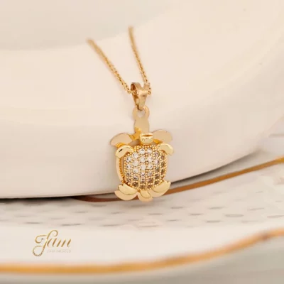 پلاک طلا لاک پشت طرح 2 سواروسکی کد P6258