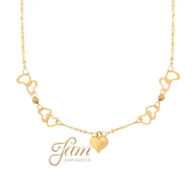 گردنبند طلا زنجیر پولکی قلب متصل و تک قلب پر کد NP7497