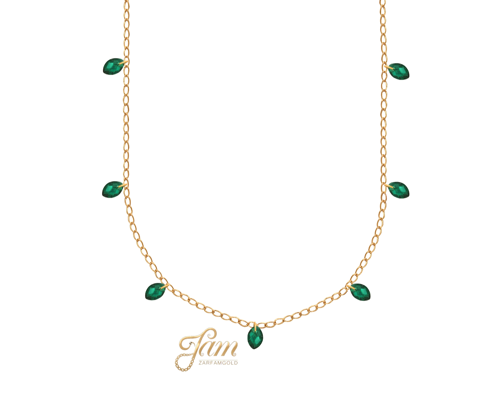 گردنبند طلا کارتیر ظریف با آویز نگینی سبز کد NP7808