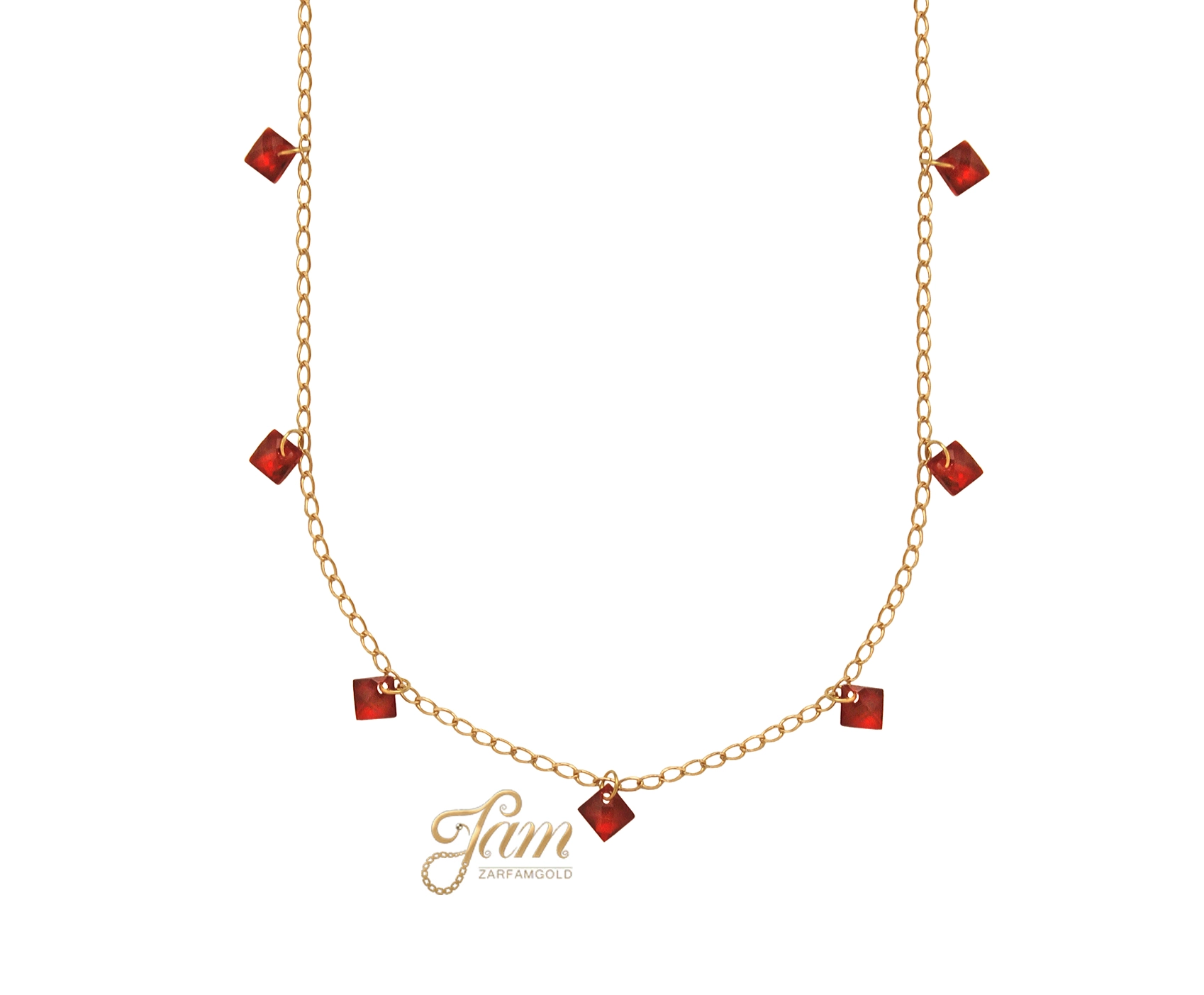 گردنبند طلا کارتیر ظریف با آویز نگینی قرمز کد NP7809