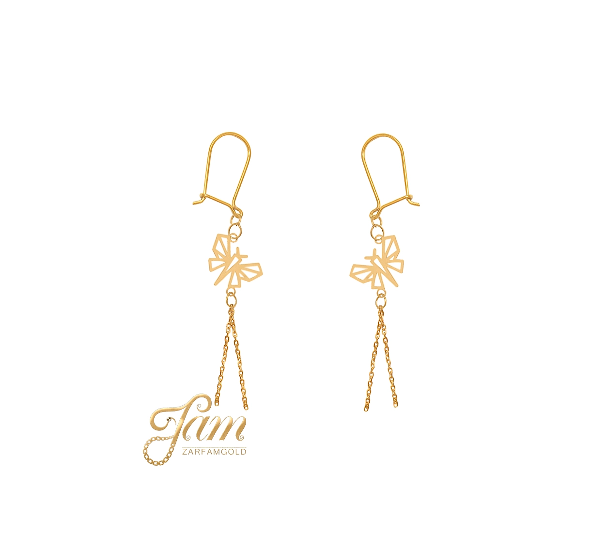 گوشواره طلا سنجاقک با آویز زنجیر کد E7796