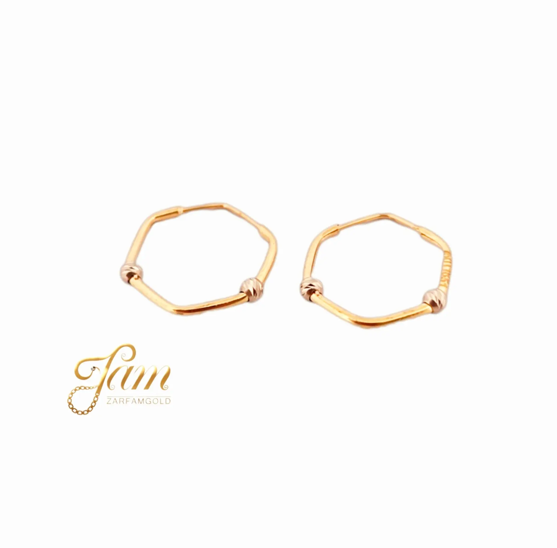 گوشواره طلا شش ضلعی با دو گوی سفید کد E5781