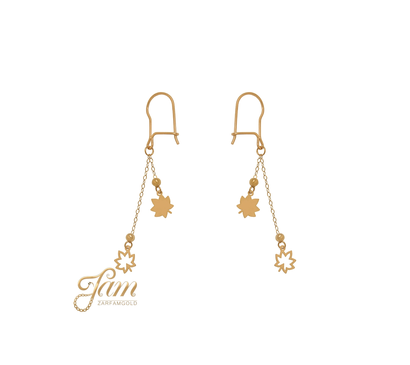 گوشواره طلا عصایی با دو آویز برگ پر و تو خالی کد E7772