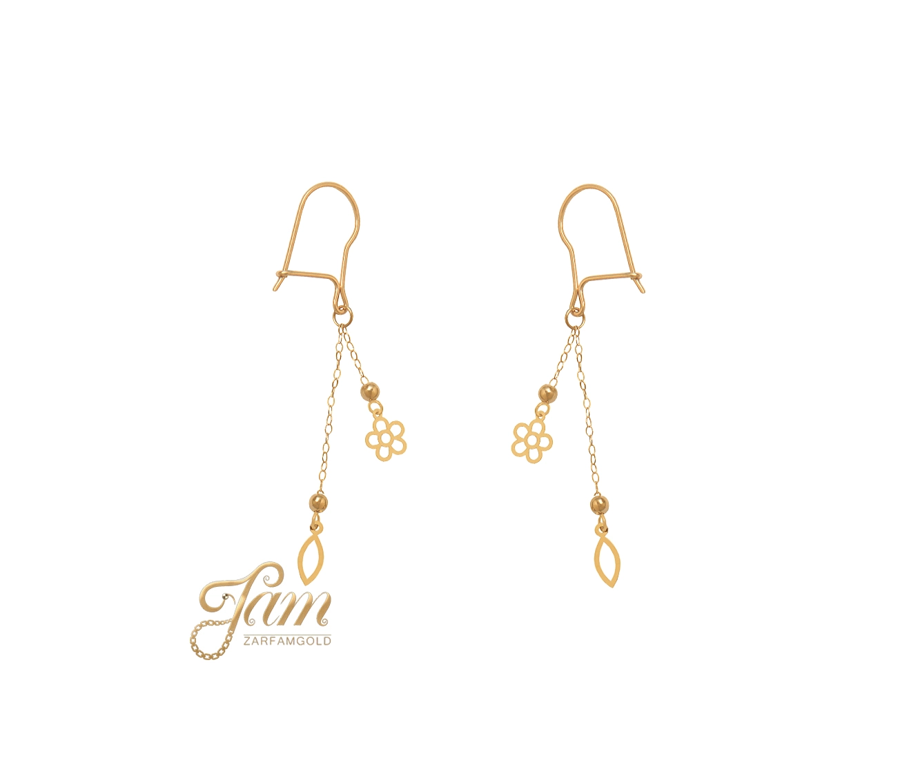 گوشواره طلا عصایی با دو آویز گل و بیضی کد E7768