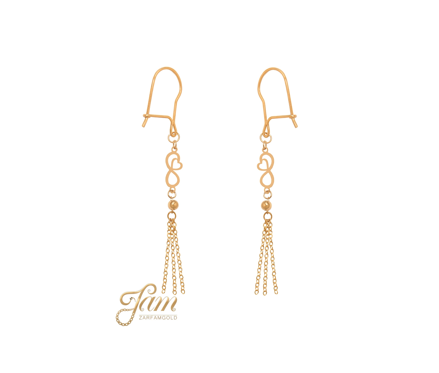 گوشواره طلا عصایی بی نهایت با آویز زنجیر کد E7774
