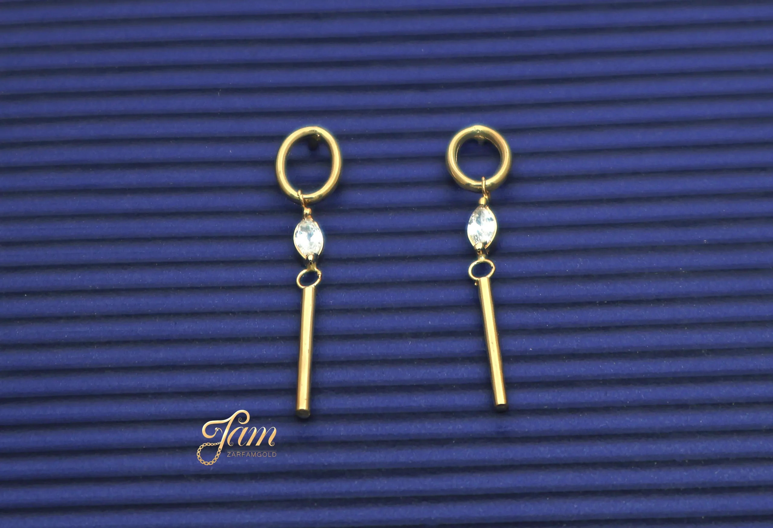 گوشواره طلا لوکس حلقه ای با آویز خطی نگین سفیدکد E4727