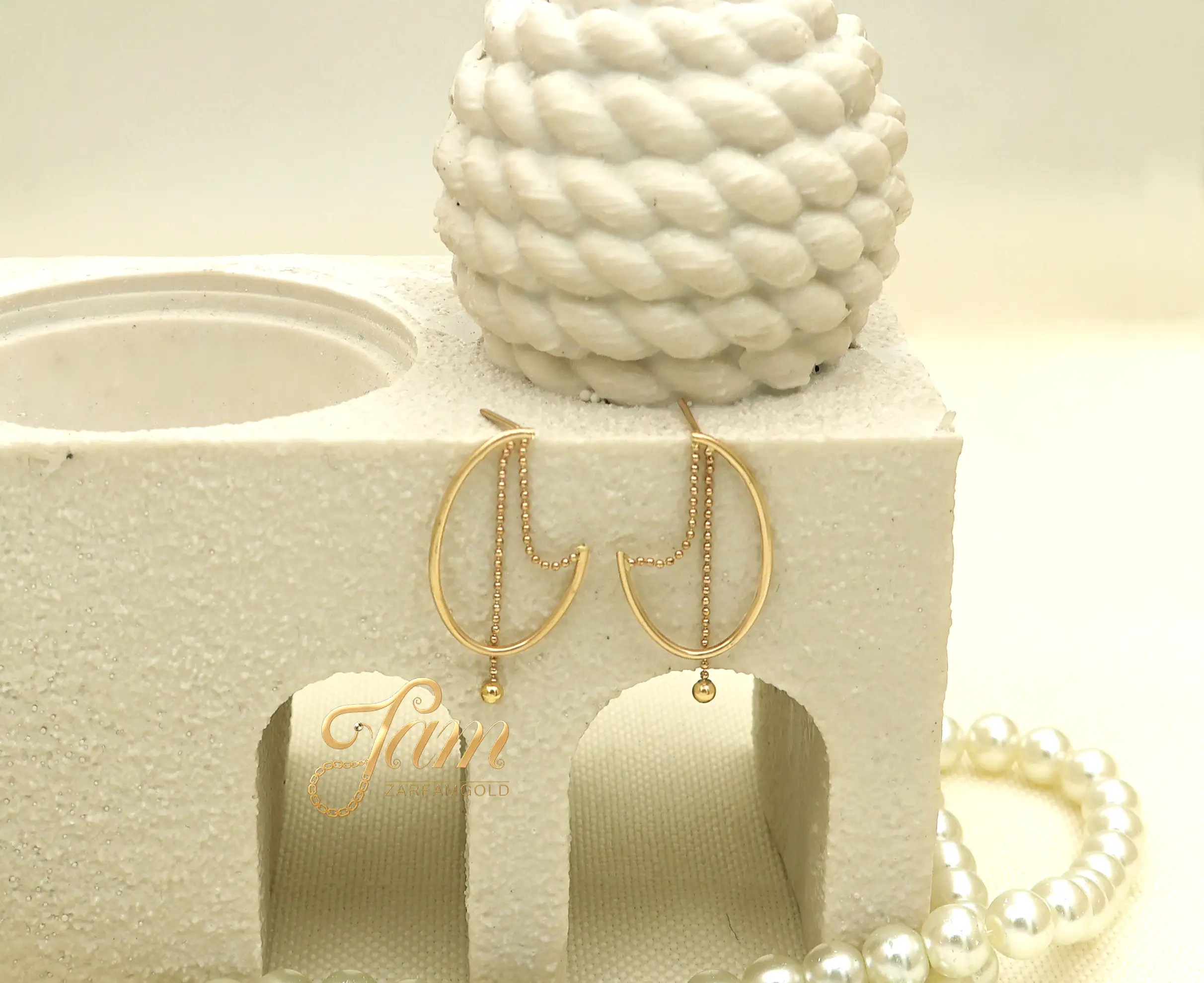 گوشواره طلا لوکس فانتری با آویز دو زنجیر و گوی کد E5285