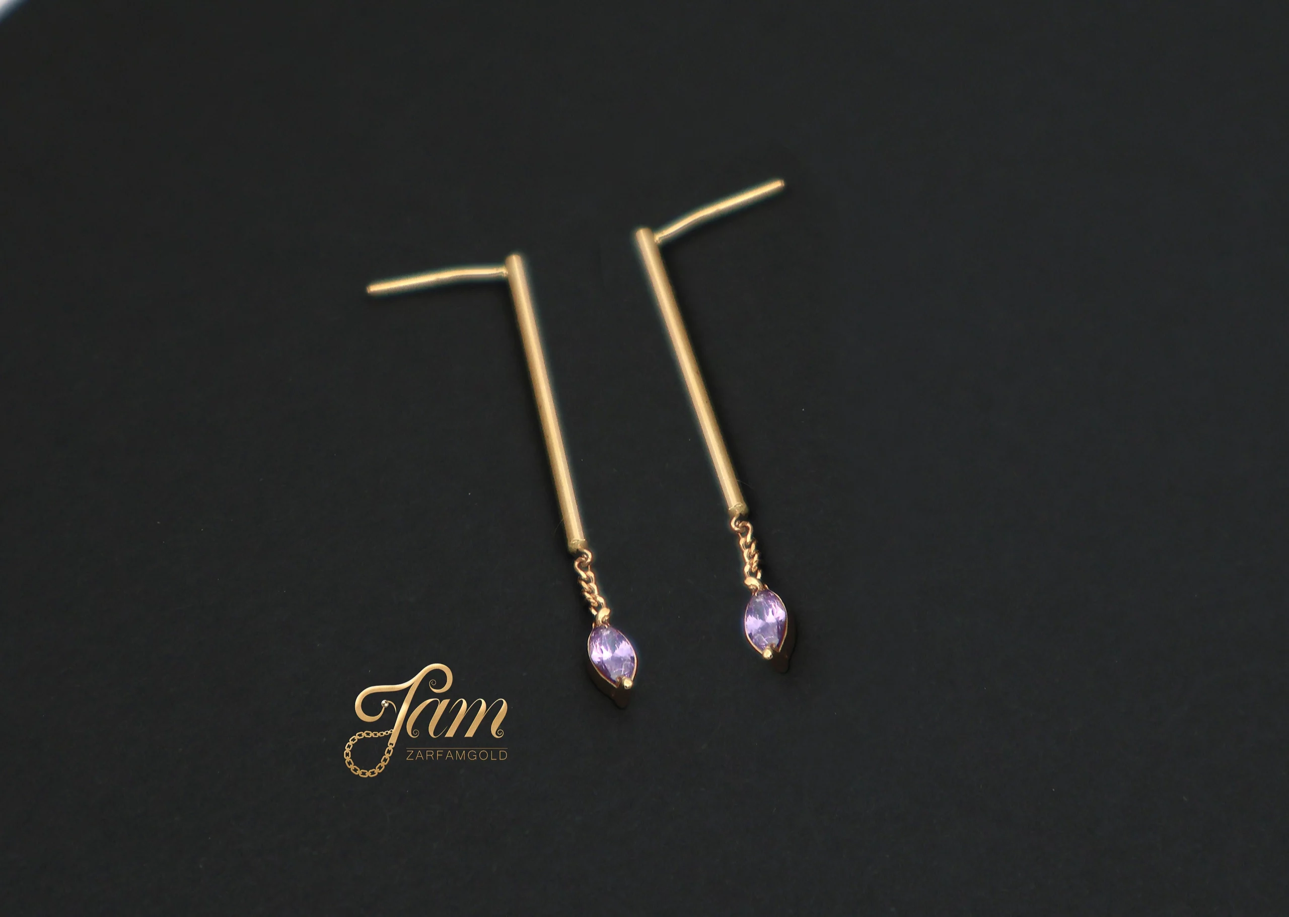 گوشواره طلا لوکس مفتولی با آویز زنجیری نگین یاسی کد E4728