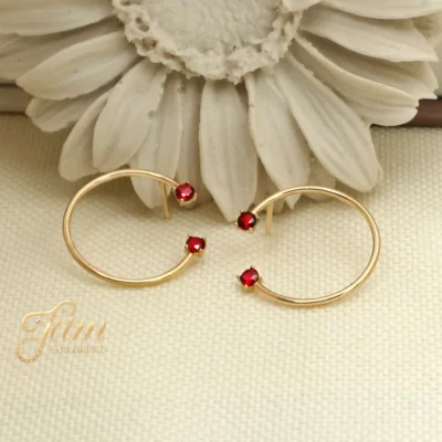 گوشواره طلا لوکس هلال با دو نگین قرمز کد E5296