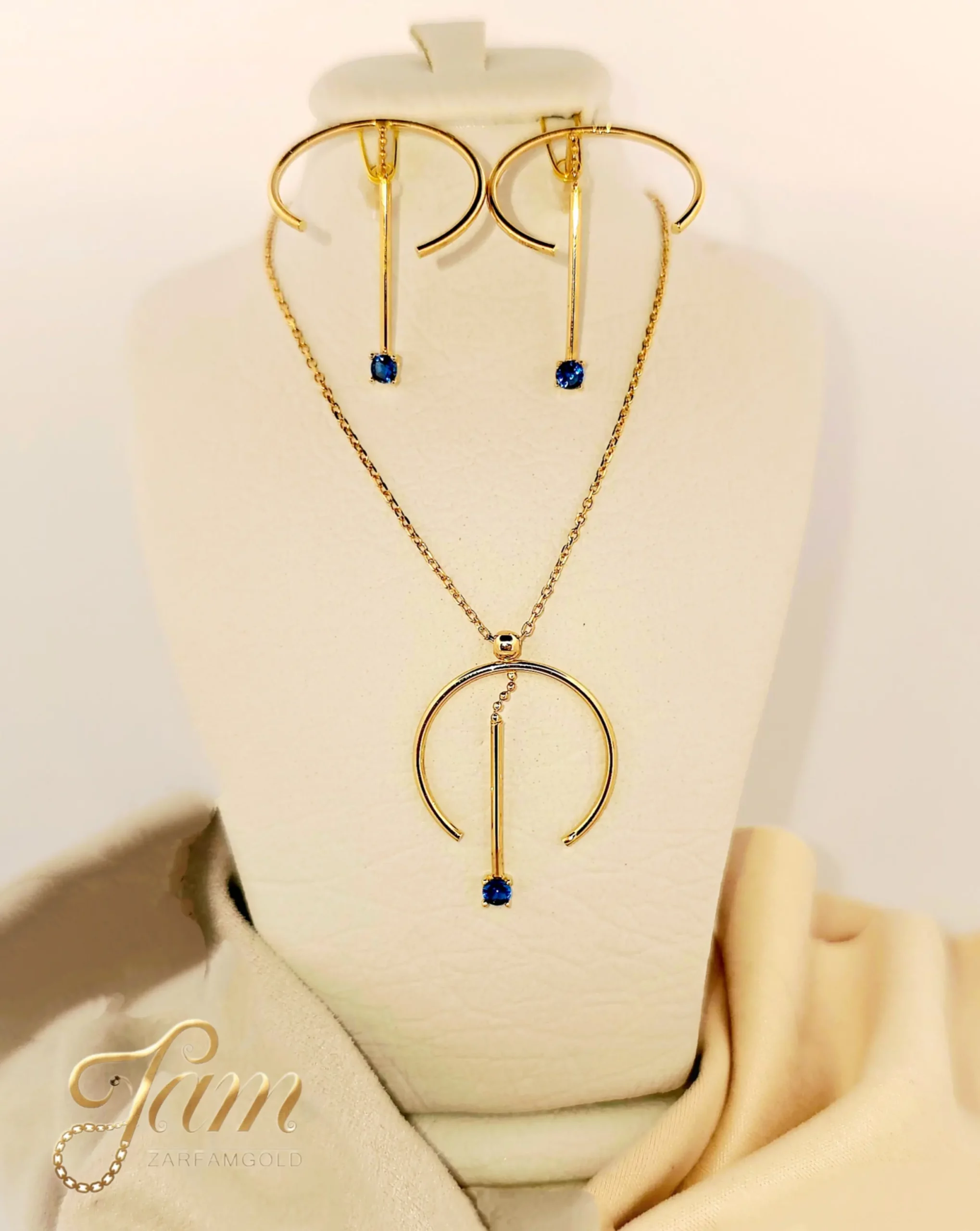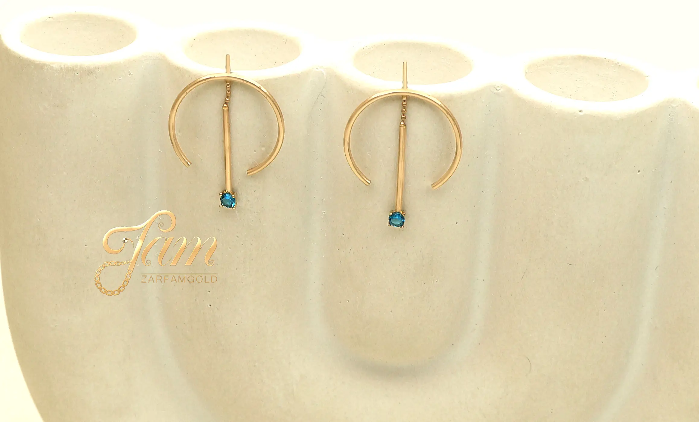 گوشواره طلا لوکس هلالی با آویز خطی نگین آبی کد E5305