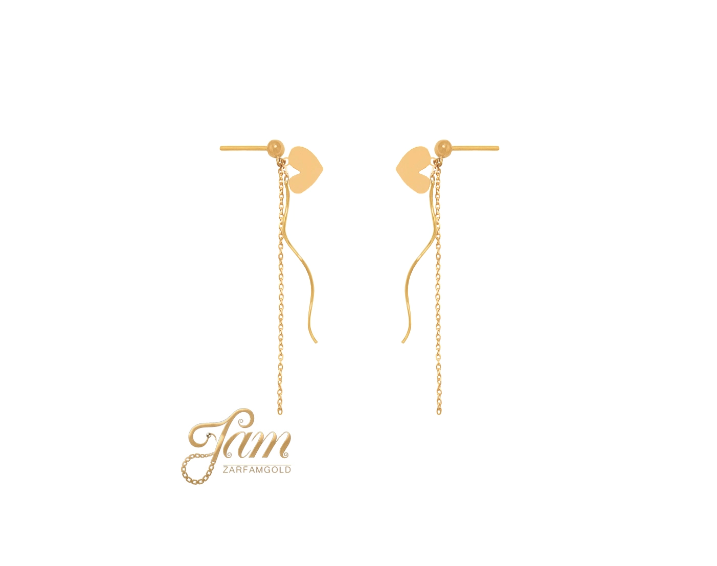 گوشواره طلا میخی فرفری و قلب کد E6428