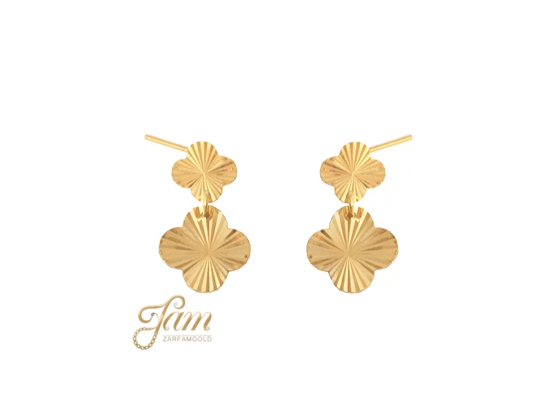 گوشواره طلا میخی ونکلیف تراش با آویز کد E6439