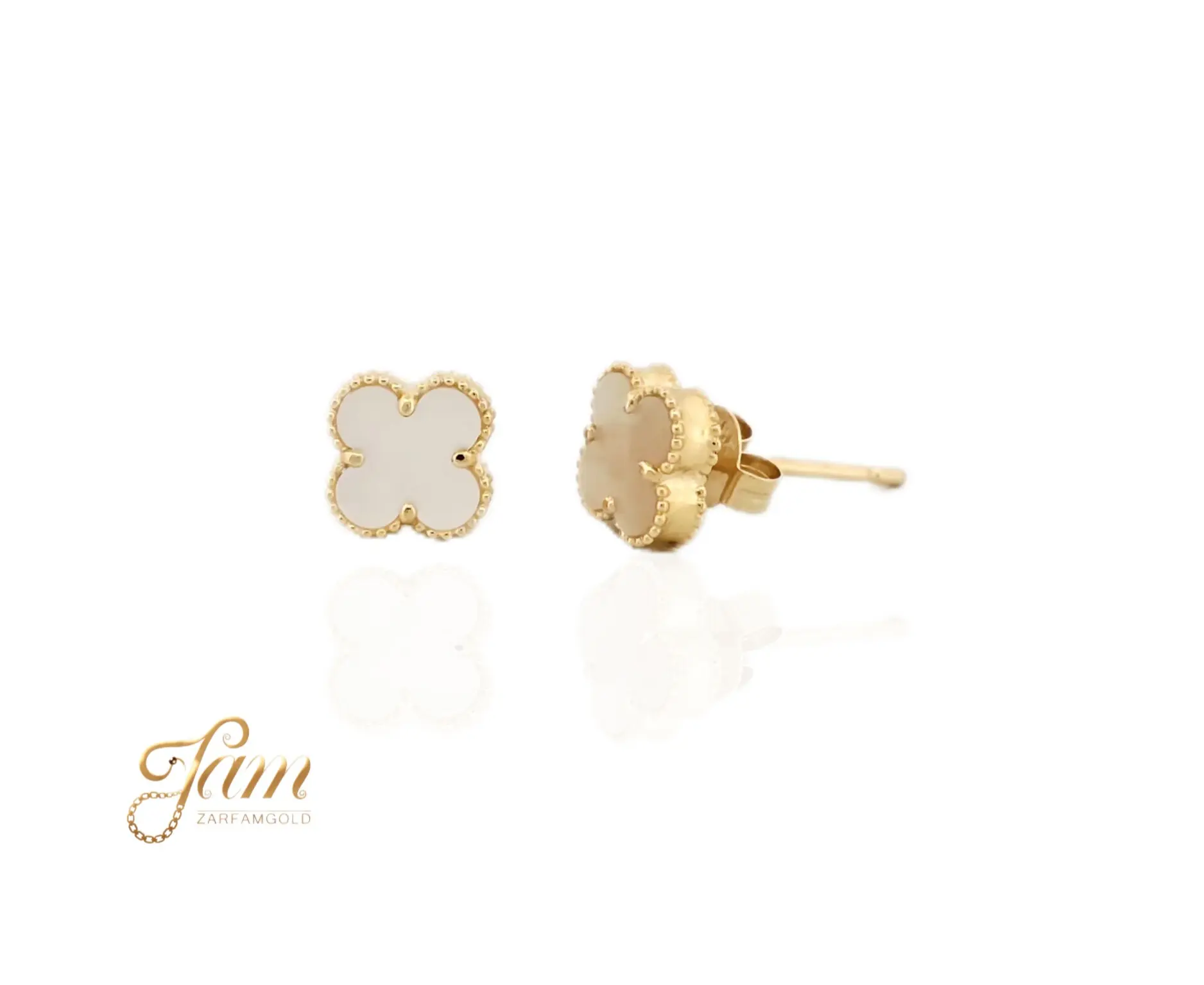 گوشواره طلا میخی ونکلیف سفید کد E7737